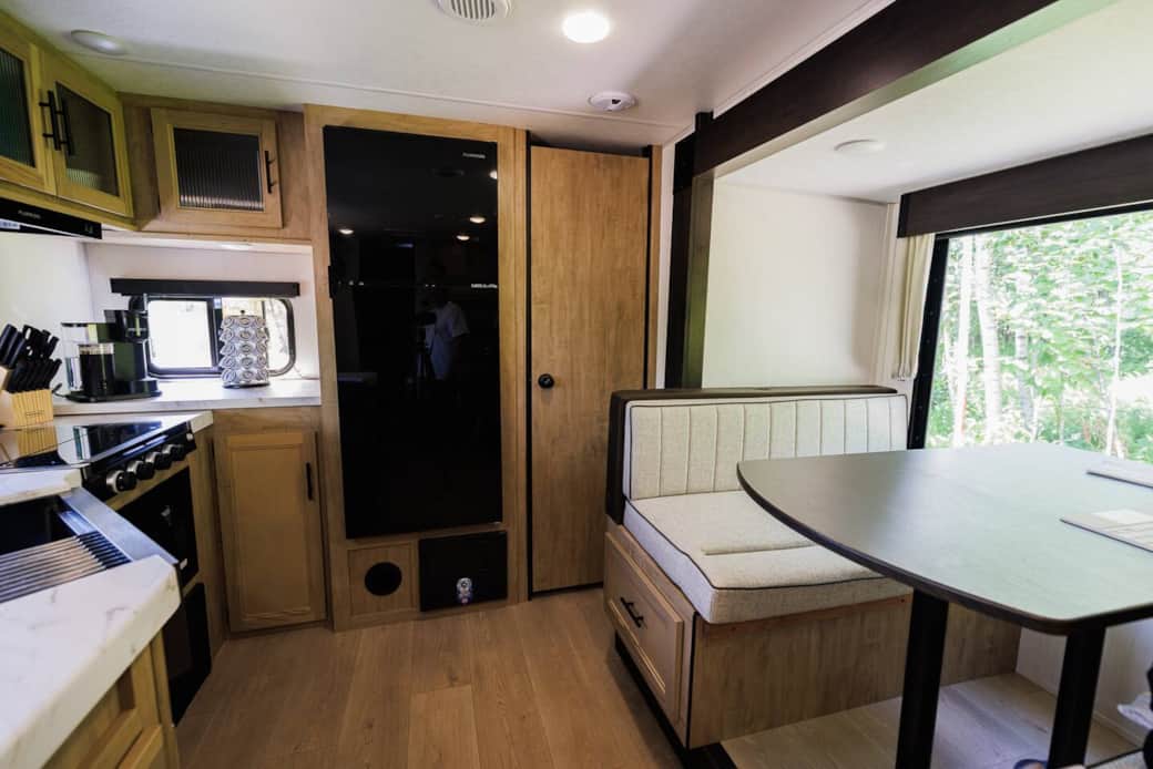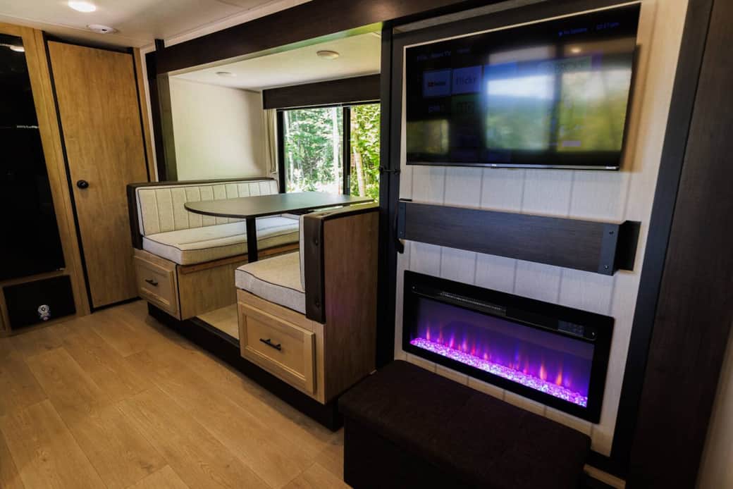 This is a new 2026 thirty-foot Cherokee Grey Wolf RV on a new gravel pad with an outdoor kitchen and gas fire pit. - Pull-through driveway with room for boat or ATV trailers. - Guests will have access to walking trails on our 8-acre property. - Public and private fire pits. - Off-grid but powered by a large solar generator and backup gas generator. - The water in the RV comes from rainwater. - Dark Sky Area - Near ATV trails, 13 lakes and not far from Baxter State Park or Moosehead Lake.